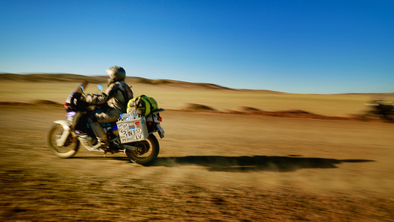 Auf spektakulären Strecken durchqueren sie den Gorki Terelji und Khangei Nuruu Nationalpark. Die Temperaturen pendeln zwischen +42 Grad am Tage und nahe Null in der Nacht. So lässt es sich im Land der Jurten und Nomaden immerhin gut schlafen. 4-6 Liter Trinkwasser verbrauchen sie in den Etappen am Rande der Wüste Gobi Richtung Altai Gebirge. Hier geht es ums Ganze: Mensch und Material erfahren ihre Grenzen auf dieser Reise Richtung Sonnenuntergang.