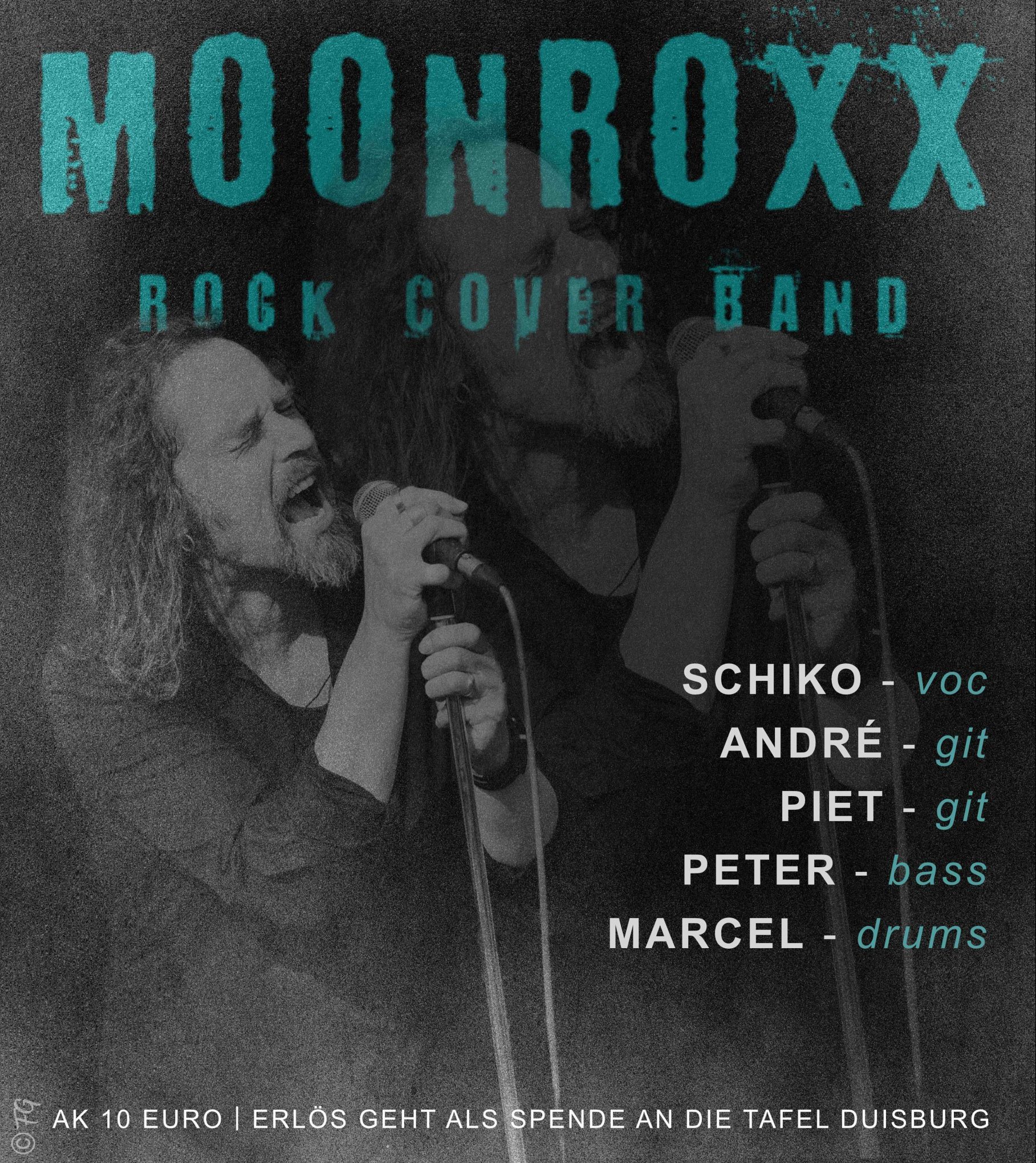 Die Band Moonroxx setzt ein Zeichen der Solidarität für die Menschen in unserer Stadt, die jeden Tag „A long hard road“ vor sich haben und spendet den gesamten Erlös aus diesem Konzert an die Tafel Duisburg.
