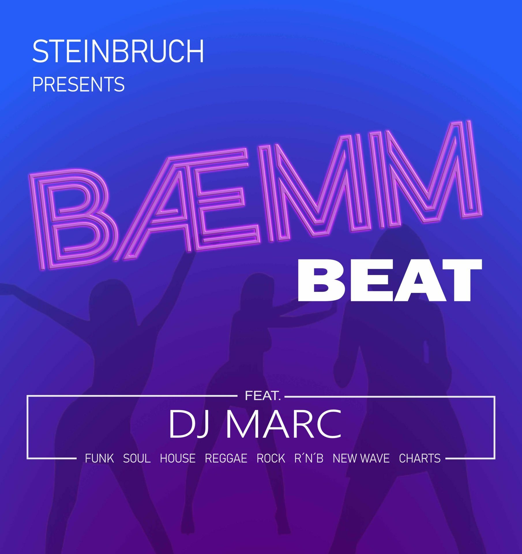Die neue Partyreihe BÆMM BEAT an jedem 1. Samstag im Monat im Steinbruch mit DJ Marc und der besten Musik aus den letzten fünf Jahrzehnten.