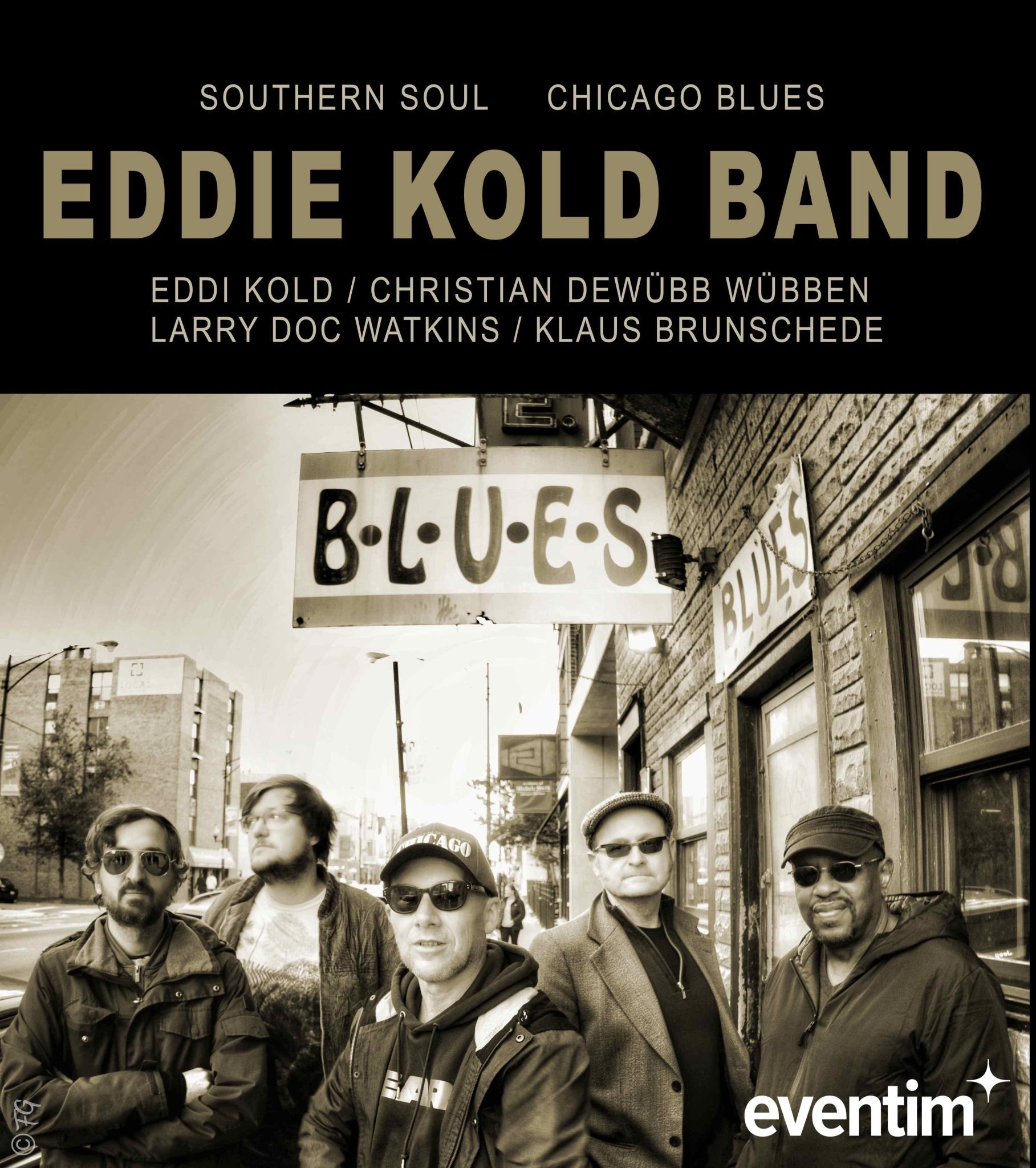 Die EDDIE KOLD BAND hat sich dem Southern Soul, wie er in den Bluesclubs der South und West Side von Chicago zelebriert wird, verschrieben. Dazu servieren sie in ihrem Gumbo: erdige Bluesrock-Anleihen, galvanisch angereichert mit Jazz- und Soul-Feeling, dies alles final gewürzt mit ihrer ganz eigenen Note.