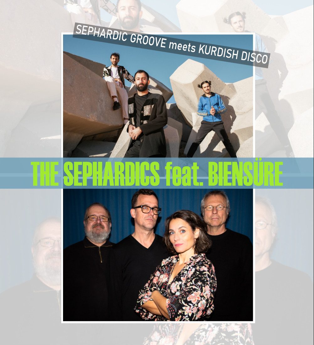 Schon lange beschäftigen sich „The Sephardics“ mit der zeitgenössischen Bearbeitung sephardischer Musik – jazzig, rockig, groovig, improvisiert – und finden in der Marseiller Band „BIENSÜRE“ – disco, funky, electro – kongeniale Spielpartner, einen auf traditionellen Songs basierenden mitreißenden, total gegenwärtigen Mittelmeersound zu kreieren. Feinster Mediterrenian surround!