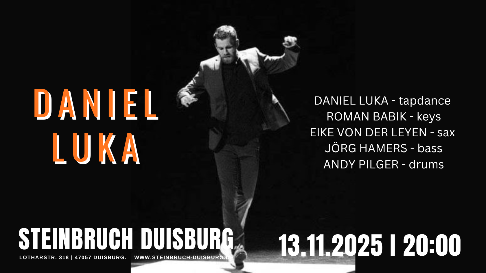 Daniel Luka ist ein weltweit gefragter Stepptanzkünstler. Ob als Tänzer und Produzent eigener Bühnenstücke, Gasttänzer und Mitglied verschiedener companies, bei zahlreichen Fernsehauftritten und Veranstaltungen, als Dozent sowie Gastdarsteller bei Festivals und Konzerten mit einer Vielzahl internationaler Tänzer und Musiker: Daniel ist immer auf der Suche nach neuen Wegen. Er schätzt die Grenzüberschreitung, experimentiert mit genreübergreifender Musik, nimmt Impulse aus den unterschiedlichsten Kulturen auf oder sucht die Verknüpfung mit Video und digitaler Kunst.