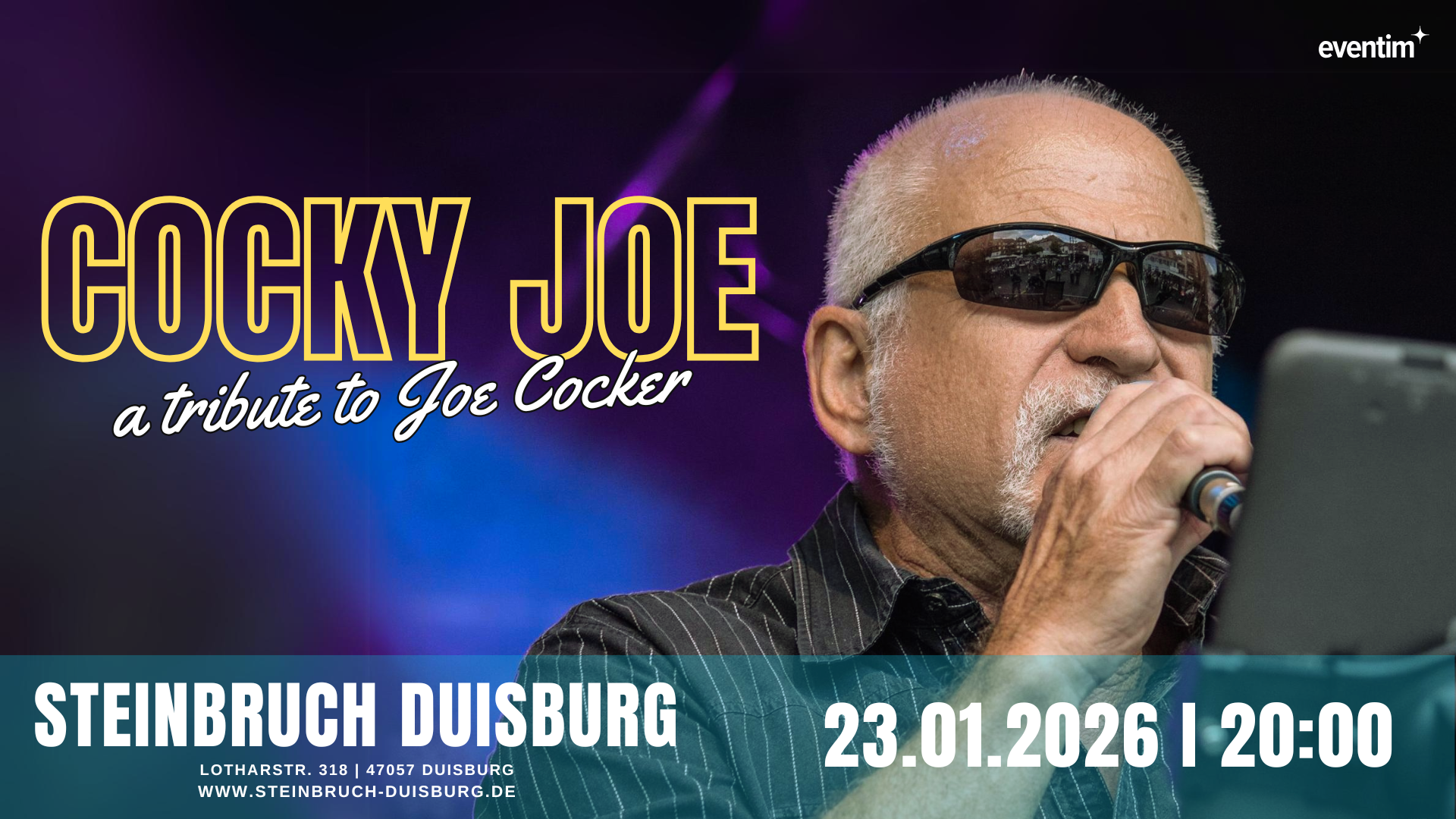 Wer die Musik von Joe Cocker mag, wird an diesem Abend bestimmt auf seine Kosten kommen. Mit der Band Cocky Joe kommen fünf sehr erfahrene Musiker, die sich schon seit vielen Jahrzehnten auch in anderen Rockformationen einen Namen gemacht haben. Nach dem Tod von Joe Cocker im Dezember 2014 griff der Mülheimer Sänger Günter Büschges die Idee auf, eine Cocker Tribute Band zu gründen. Ein Name war schnell gefunden und so wurde die Tribute Band “Cocky Joe“ gegründet.