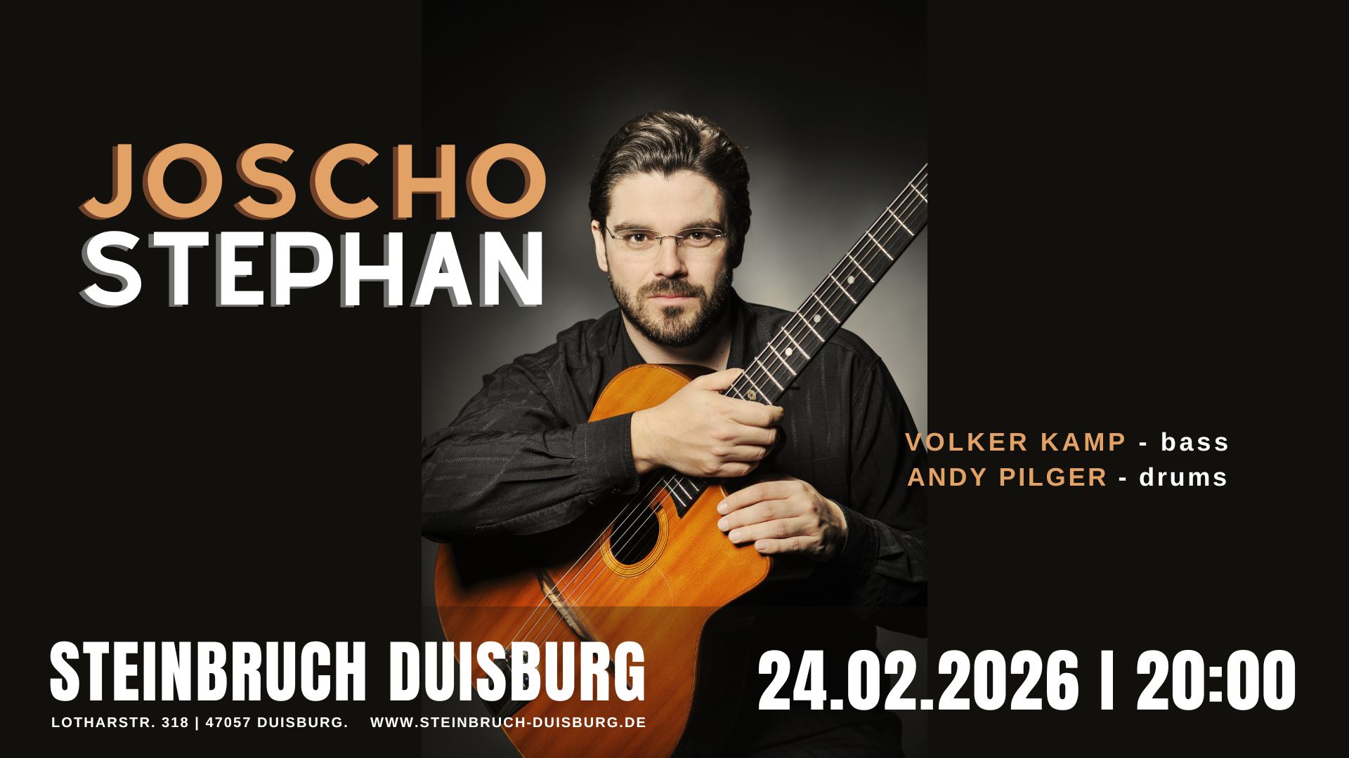 Kaum ein Gitarrist vermag derzeit den Gypsy-Swing auf vergleichbarem Niveau zu spielen wie Joscho Stephan. Mit authentischem Ton, harmonischer Raffinesse und rhythmischem Gespür, vor allem aber mit seiner explosiven Solotechnik gilt der Mönchengladbacher Meistergitarrist als „Zukunft der Gypsy Jazz Gitarre“ und legitimer Thronfolger des legendären Django Reinhardt.