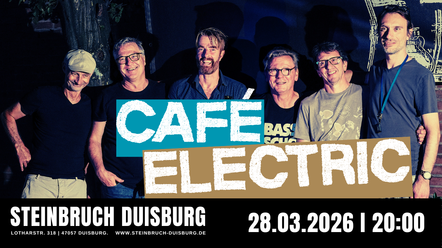2018 musste sich Café Electric neuformieren. Mit Andreas Voss (Sologitarre, Sax, Querflöte, Gesang), dem Schlagzeuger Christopher Hafer, sowie dem Bassisten Ralf Erlemann, erzählt Café Electric bekannte Geschichten weiter, komponiert neue Stories hinzu und präsentiert ihren kraftvollen Sound und Groove im neuen Gewand. Klanglich und persönlich komplettieren die Ur-Bandmitglieder Johannes Schäfer (Rhythmusgitarre), Thomas Tigges (Keys) und Andreas Petri (Percussion und Gesang) die sechsköpfige Besetzung.