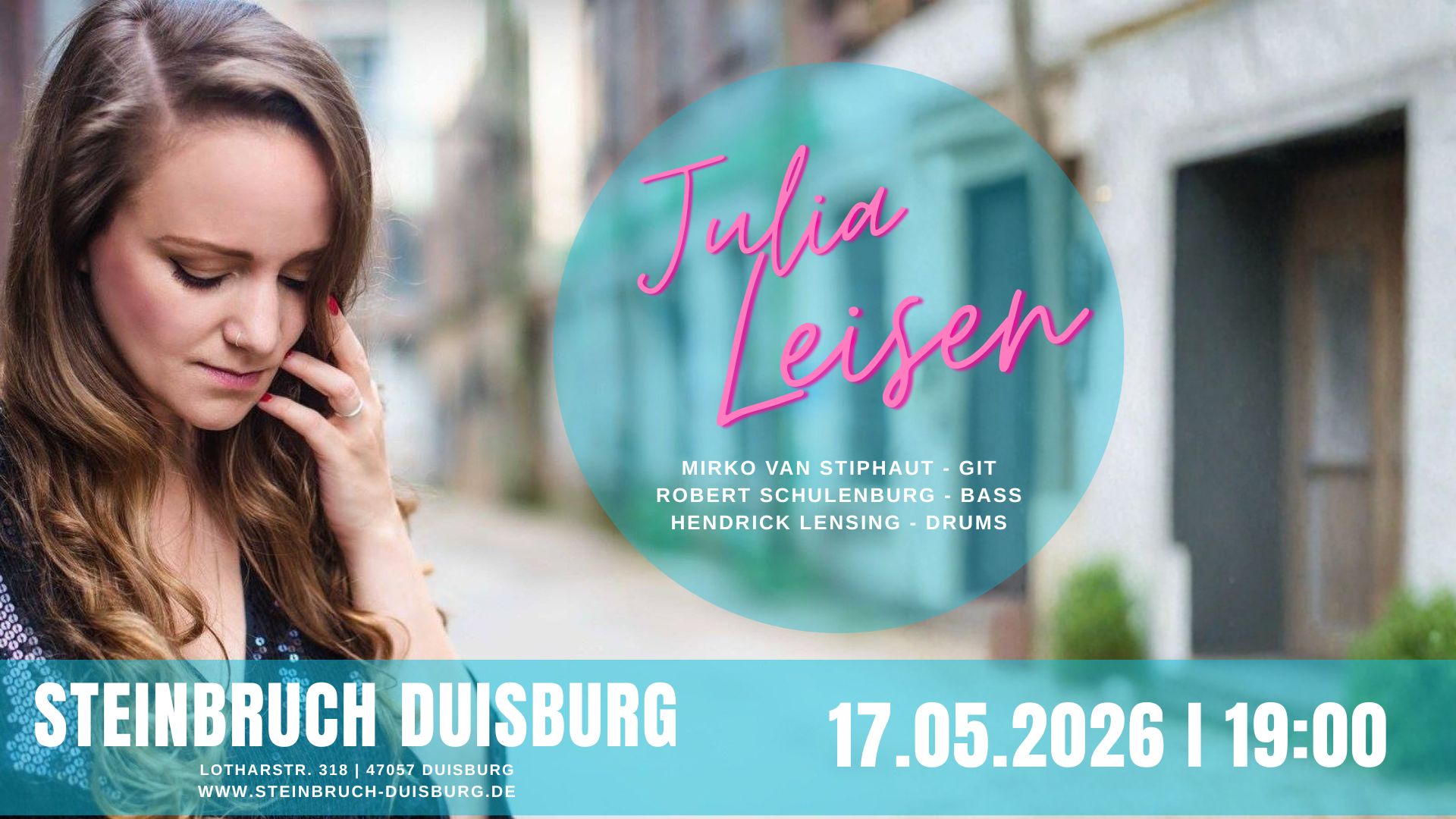Nach dem Abi hat Julia angefangen sich musikalisch in Köln auszutoben und ist seit 2007 hauptberuflich Sängerin in Bands, Shows und im Studio. Sie liebt die Vielseitigkeit in der Musik und singt Jazz, Soul und Rock. Julia überragt alle in ihrer erfrischend herzlichen, authentischen Art und ihrem technisch brillanten Gesang.