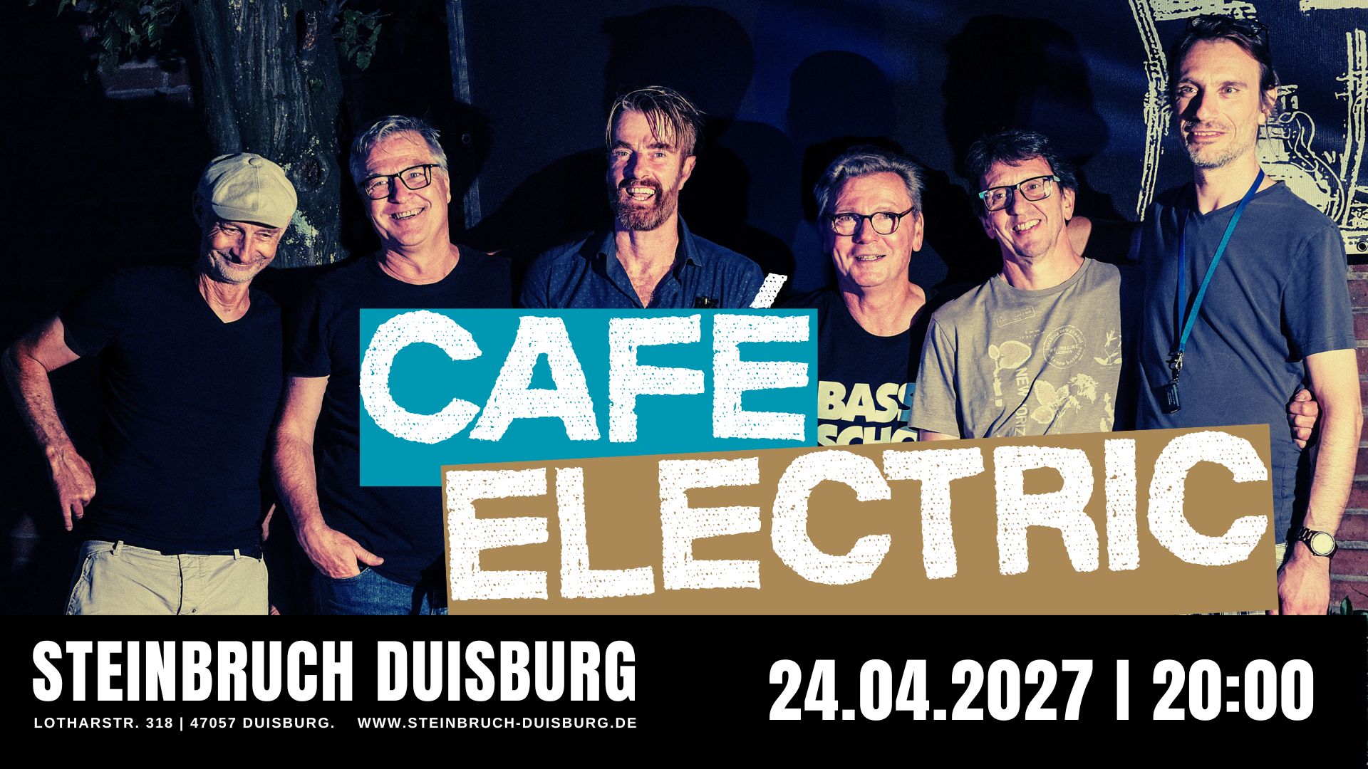 2018 musste sich Café Electric neuformieren. Mit Andreas Voss (Sologitarre, Sax, Querflöte, Gesang), dem Schlagzeuger Christopher Hafer, sowie dem Bassisten Ralf Erlemann, erzählt Café Electric bekannte Geschichten weiter, komponiert neue Stories hinzu und präsentiert ihren kraftvollen Sound und Groove im neuen Gewand. Klanglich und persönlich komplettieren die Ur-Bandmitglieder Johannes Schäfer (Rhythmusgitarre), Thomas Tigges (Keys) und Andreas Petri (Percussion und Gesang) die sechsköpfige Besetzung.